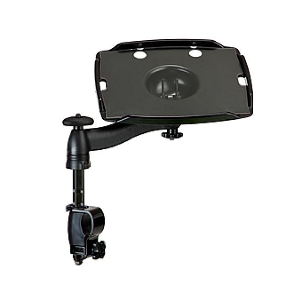 The communication tray is perfect for iPad, tablet, communication aid or any AT device less than ten pounds. It can be adjusted to the right height and angle and it can also swing away to the side if needed.