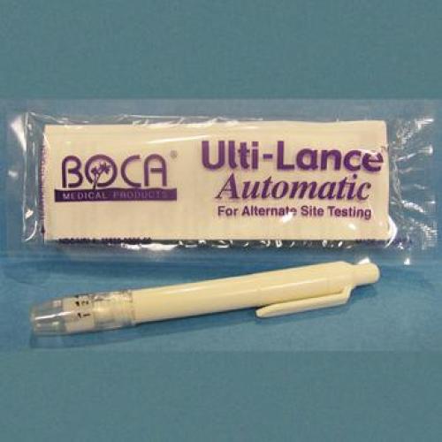 Our Ulti-Lance alternate site testing device allows you to choose the most comfortable depth and place for your test. It has a clear cap for easy viewing and five settings to fit your needs. It also has an ejection feature, so you can safely dispose of your lancet. Although the Ulti-Lance can be used with any standard lancet, for best results, we recommend using Ultilet® Lancets.