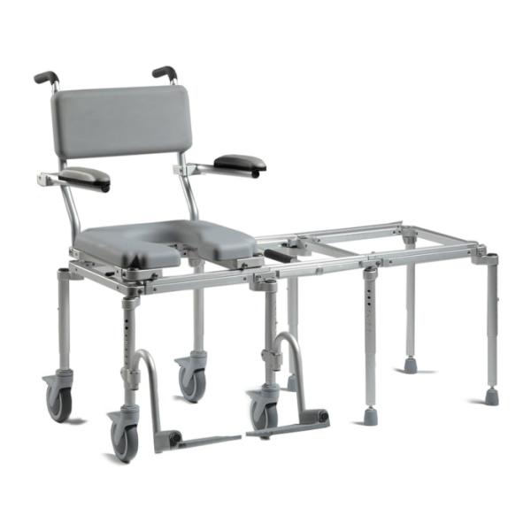 A tub/slider system which eliminates bathroom transfers and is an effective alternative when installing a roll-in shower isnt possible. Seat height adjusts from 20" to 24 to provide access over even the highest toilets required by the ADA. The connector bridge is removable for shower curtain closure.