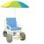 Ideal all terrain chair offers a 22" internal width, safety belt, cushion seat,storage container, and umbrella.