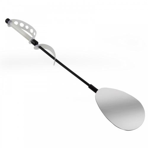 4" x 6" oval double-sided break-resistant lightweight mirror has an adjustable hand loop. Flexible shaft is 9" long, overall length is 19".