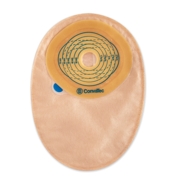 Designed for one-time use the pouch is made of a quiet, odor-proof plastic with a non-clinging fabric that is comfortable next to the skin. A built in filter permits the elimination of gas without odor. The pre-cut style utilizes the large oval skin barrier that eliminates the need for both a support collar and a tape edge.