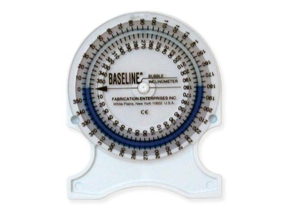 Place the baseline bubble inclinometer near the joint to be measured: turn dial until scale reads 0; take joint through its range; read range traveled directly from dial. Numerous neck and back measurements require the simultaneous use of 2 inclinometers.