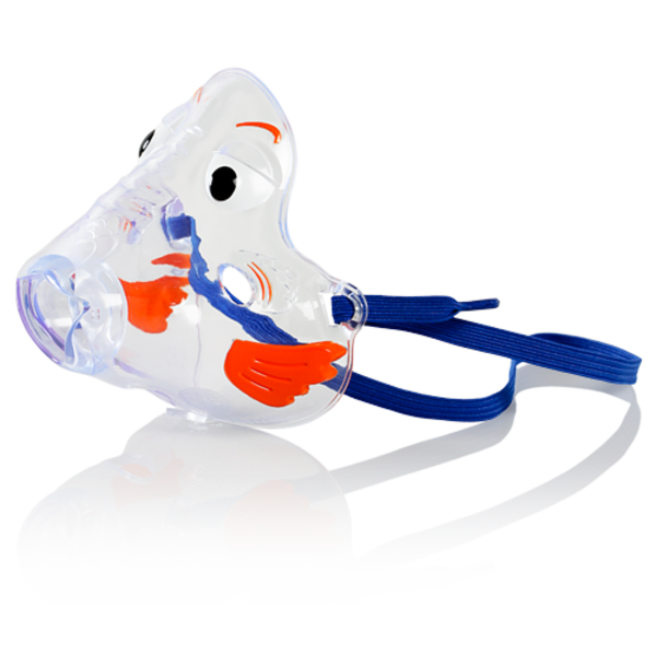 Bubbles the Fish II mask has a unique front-loading design minimizes wastage as the aerosol rides in on the patient's breath stream. Developed and tested at one of the worlds leading aerosol institutions, this revolutionary mask is made of soft material and with cutouts to minimize medication deposition in the eyes.