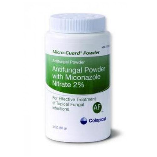 2% Miconazole Nitrate in a non-caking corn starch base for the treatment of most superficial skin infections caused by yeast (Candidiasis), jock itch, ringworm, and athlete's foot.