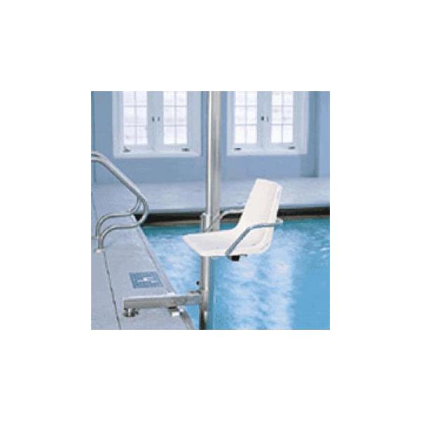 For those who can do a diagonal or front-pivot transfer, the Model IGAT-90 may be ideal. Access for transfer is best with small or no gutter. The seat rotates backward (counter-clockwise) into water, and forward when exiting. The standard seat has two arms.