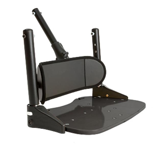 The footboard is used for placement of feet and some weight-bearing through legs and feet during functional sitting activities. Also required for attaching sandals and ankle straps to meet specific positioning needs. The footboard swings backward out of the way for sit-to-stand transfers, or clients can use the footboard as a step for transfers.