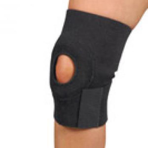 Neoprene knee wrap provides warmth, flexibility and support. Helps reduce the pain and discomfort associated with sprains, strains and arthritis. Easy application and adjustability. Fits either knee. Black.