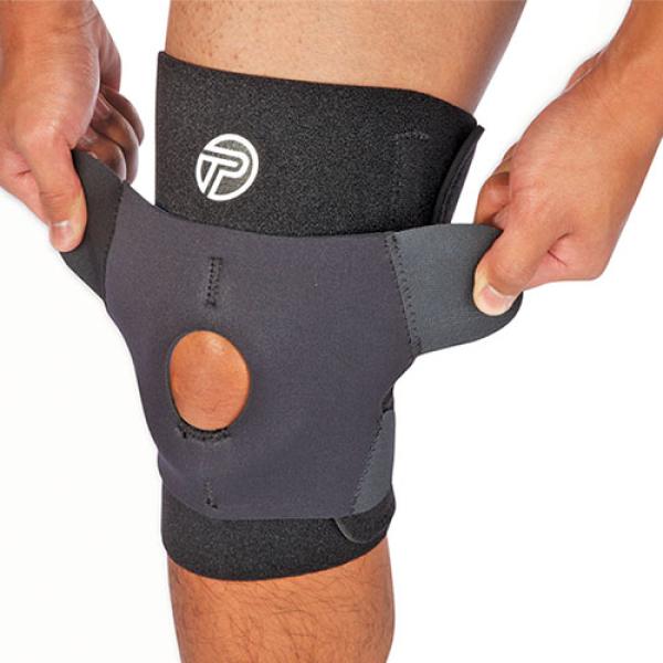 Neoprene wrap is open behind the knee for greater comfort. Unique design offers a smaller, second layer of neoprene to provide custom fit and allow user to control amount of compression. Spirals stays and infrapatellar buttress provide additional support.