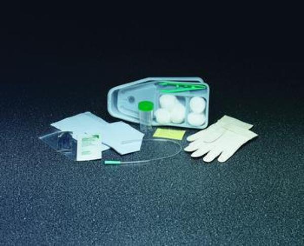 Tray prepping components include: drape, underpad, latex gloves, povidone-iodine swabs, 5g lubricant packet, specimen container and a label.