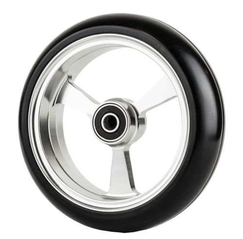 Stylish 5 x 1 1/2 wheelchair caster wheel. Features strong billet aluminum construction with precision bearings.