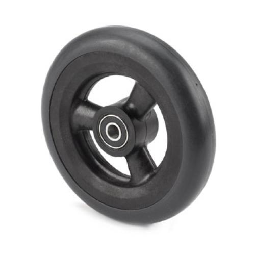 Black 3-Spoke Wheel, Black Smooth Urethane Tire. 5/16" Precision Bearing, 1" hub width.