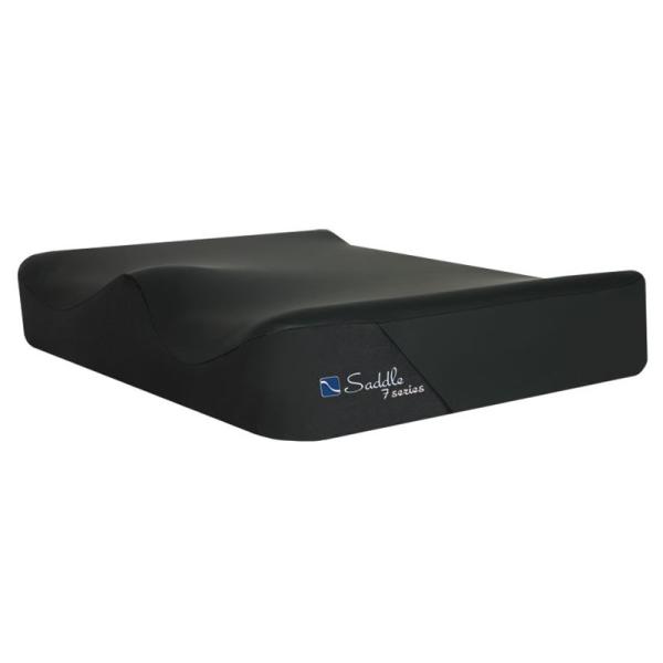 The Saddle cushion is a unique cushion made with 2 layers of high resiliency foam to provide increased comfort and decrease the probability of pressure sores. The coccyx cutout relieves pressure and alleviates ulcers. A radius bottom provides versatile surface for sling or flat seating surfaces. The Kwik Strap loops secure the cushion to the wheelchair by securing around the back vertical posts.